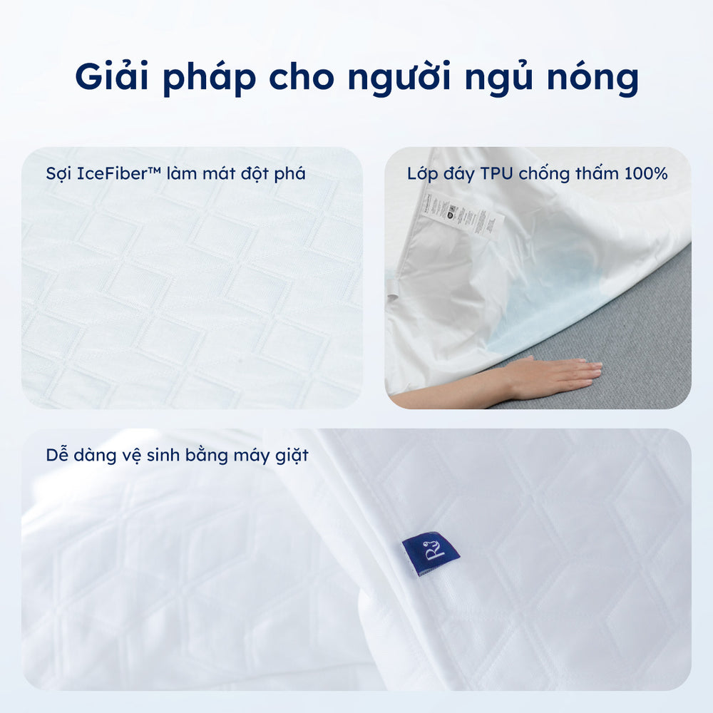 Đây là một tấm bảo vệ nệm đặc biệt bởi vì ngoài khả năng chống thấm tuyệt đối với lớp TPU, nó còn được ứng dụng công nghệ IceFiber™ đầu tiên ở Việt Nam giúp hạ thiệt độ bề mặt 1 - 2 độ so với nhiệt độ phòng.