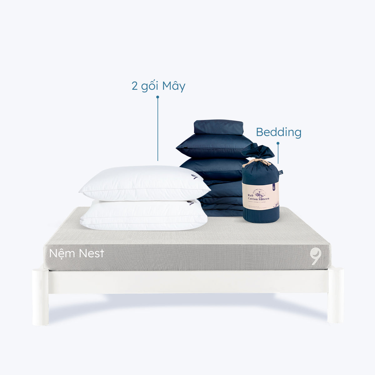 Bộ nệm memory foam Nest là sự khởi đầu tuyệt vời cho một cuộc sống tối giản nhưng đầy đủ và tiện nghi của bạn với những sản phẩm giấc ngủ thiết yếu và chất lượng cao, vừa giúp bạn có một giấc ngủ thật lại vừa hỗ trợ bạn xây dựng chiếc tổ ấm mơ ước của mình