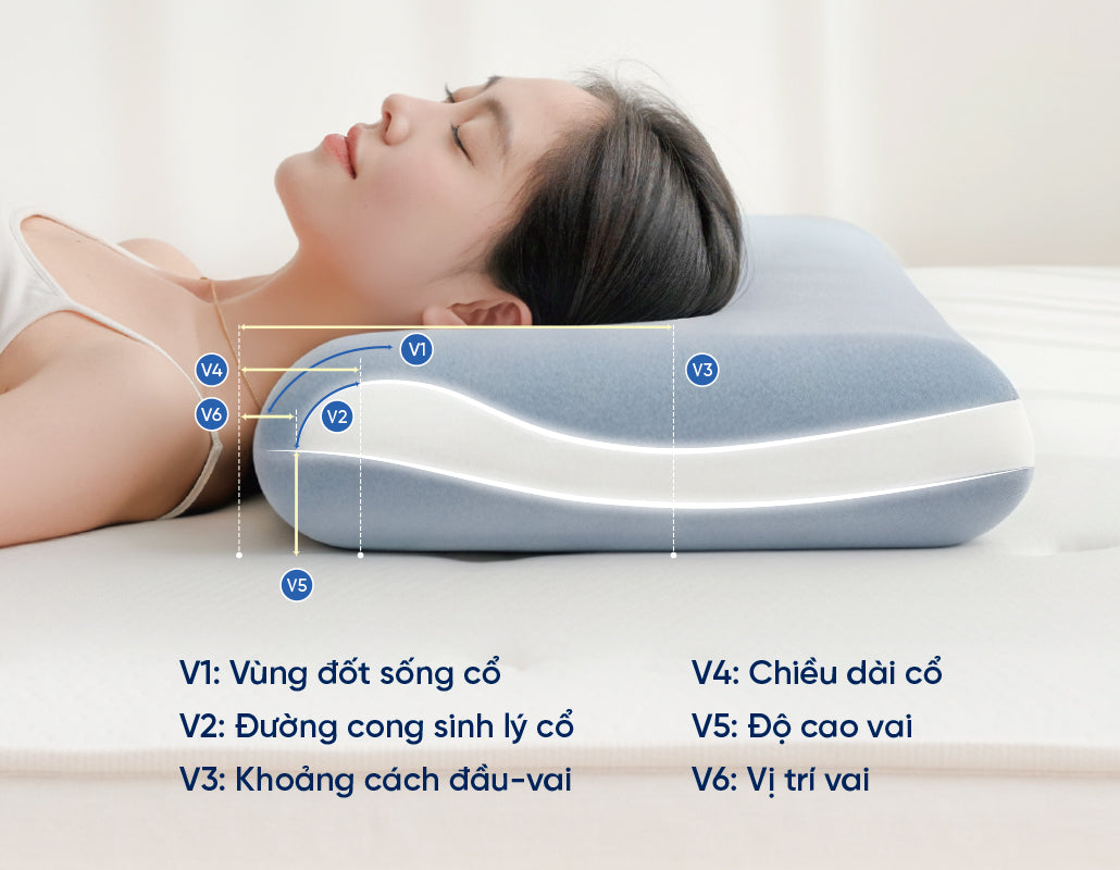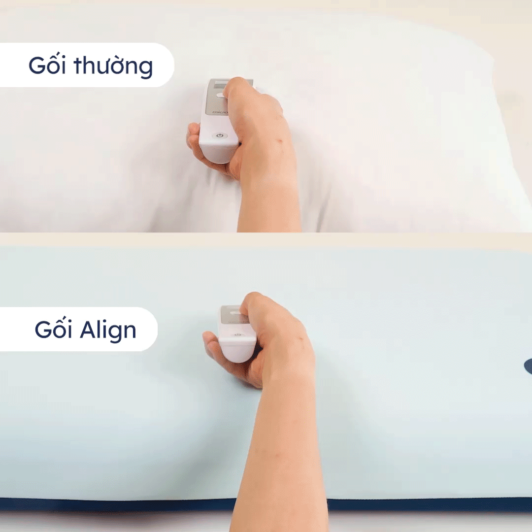 Với Gối Align, bạn sẽ không còn lo lắng về độ cứng. Gối với cấu trúc 3 tầng foam độc quyền có độ đàn hồi khác biệt, kết hợp cùng thiết kế đường cong giải phẫu học mô phỏng chính xác cấu trúc cơ thể từ đầu đến vai. Ngay khi ngả lưng, gối sẽ tự động "điền đầy" vào vùng hõm gáy và tạo điểm tựa vững chãi cho vai, giúp phân tán áp lực đồng đều và giữ cột sống cổ luôn thẳng hàng. Nhờ vậy, Align mang lại sự cân bằng lý tưởng với sự mềm mại để thư giãn cơ bắp và vừa đủ vững chãi để nâng đỡ chuyên sâu mà không hề gây cảm giác cứng hay cộm khó chịu.