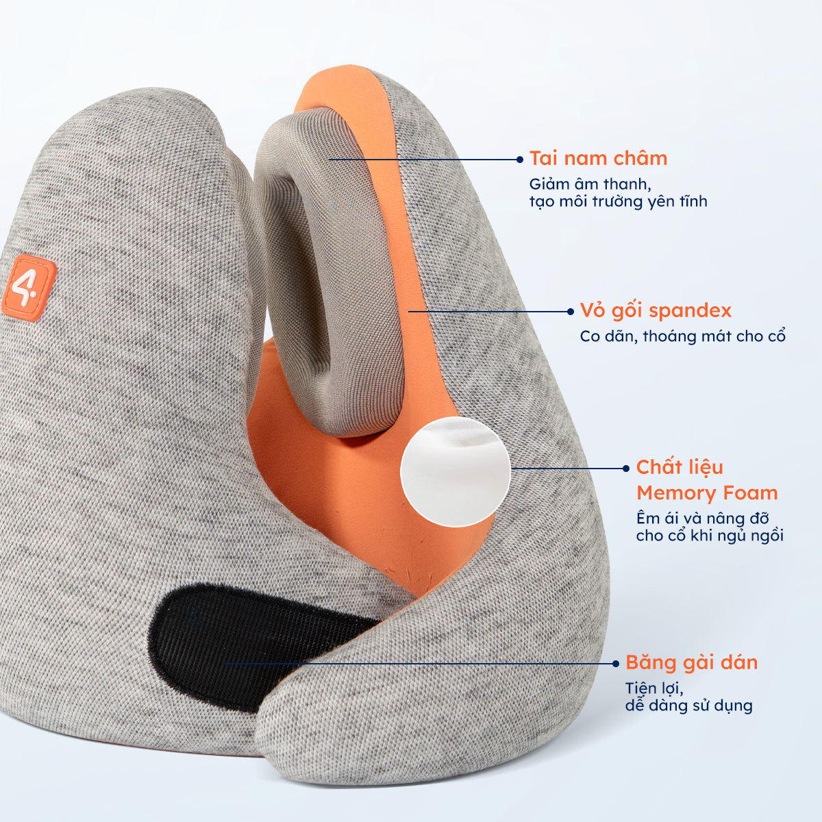 Phần tai giảm âm của gối có tích hợp nam châm, cho phép bạn dễ dàng tháo rời hoặc lắp vào. Thiết kế này giúp bạn thoải mái điều chỉnh sao cho vừa vặn với tai, đồng thời dễ dàng vệ sinh để gối luôn sạch sẽ. Dù tháo rời phần tai, gối vẫn mang lại trải nghiệm êm ái, nâng đỡ cổ và đầu tối ưu, giúp bạn có những phút giây nghỉ ngơi trọn vẹn.