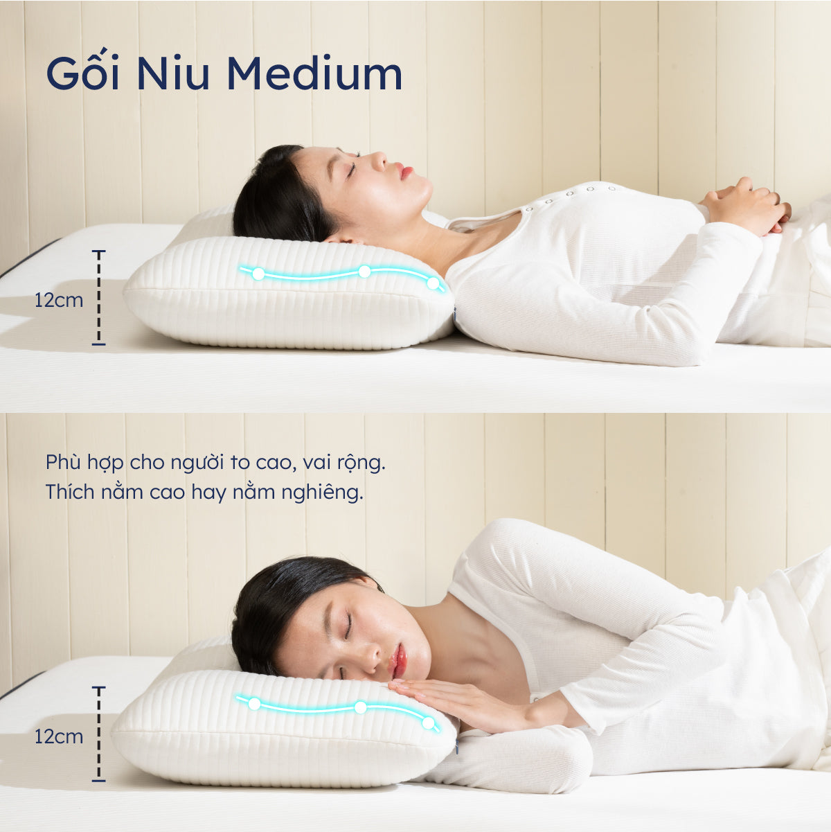 Gối Niu được Ru9 chú trọng thiết kế có hai chiều cao lý tưởng là 8cm và 12cm để phù hợp với vóc dáng người Việt. Mang đến nhiều ưu điểm vượt trội về chất liệu và công nghệ, trong khi nhiều gối foam trên thị trường có thể bị lún xẹp và mất form sau thời gian sử dụng thì gối Niu sử dụng chất liệu Graphene Memory Foam cao cấp, giúp tản nhiệt hiệu quả và duy trì độ êm ái bền bỉ suốt nhiều năm. Sản phẩm đạt chứng nhận quốc tế CertiPUR-US®, đảm bảo an toàn tuyệt đối cho sức khỏe, có khả năng kháng khuẩn, chống mạt bụi và nấm mốc. Nhờ vậy, bạn có thể yên tâm tận hưởng giấc ngủ trọn vẹn trong một môi trường trong lành và bền vững.